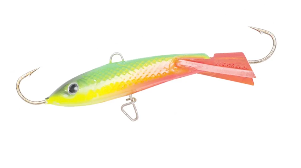 У лінійці повільно плануючих і реалістичних балансирів Fin є модель, розрахована на досить велику здобич. Габарити приманки трохи більше 7 см, вага - 19 гр. Однак варто зауважити, що розміри хвоста - майже 2 см, тому прозорий плавник-стабілізатор візуально зменшує габарити приманки, пофарбований - збільшує. Експерти Lucky John наділили Fin 5 сплощеним черевцем, тому балансир занурюється неспішно. А завдяки хвосту, рухається зі значною амплітудою, щоб обловити більший простір. Імітуюча малька приманка з "живими" очима заманить навіть тих хижаків, що знаходяться на деякій відстані від лунки. Обладнаний, крім впаяних одинарників, балансир Fin 5 трійником з різнобарвною яскравою краплею. Дражливий елемент служить додатковою точкою для атаки. Трійник кріпиться на застібці, щоб під час можливих зачепів його можна було легко зняти. Приманка своєю спокусливою грою спровокує на клювання навіть загальмовану щуку, судака або горбача-окуня.