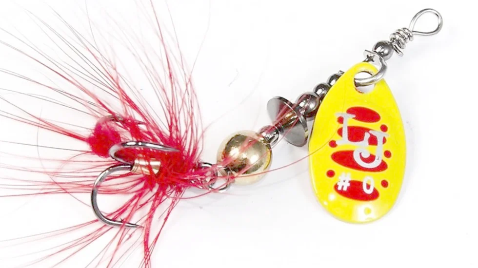 Динамічні коливання, відблиски і додаткові мікровібрації - особливості гри оберталок моделі Bonnie Blade вагою 13,4 гр. Для цього експерти бренду Lucky John наділили приманки легкою широкою, овальною пелюсткою з латуні, яка пофарбована з двох сторін. Обертання цієї деталі починається при першій потяжці вудилища, не збивається навіть на мінімальній швидкості проводки. Важкий сердечник-циліндр має поперечне рифлення, яке сприяє додатковим вібраціям. Трійник привертає увагу за допомогою яскравою мушки. Розробники Lucky John підкреслюють, що пелюстка у Bonnie Blade 13,4 не залипає. Міцний каркас з вуглецевого дроту не деформується. Приманка, завдяки солідній вазі, підійде для обловлювання великих і глибоких водойм в пошуках зубастої щуки, великих окуня або жереха.