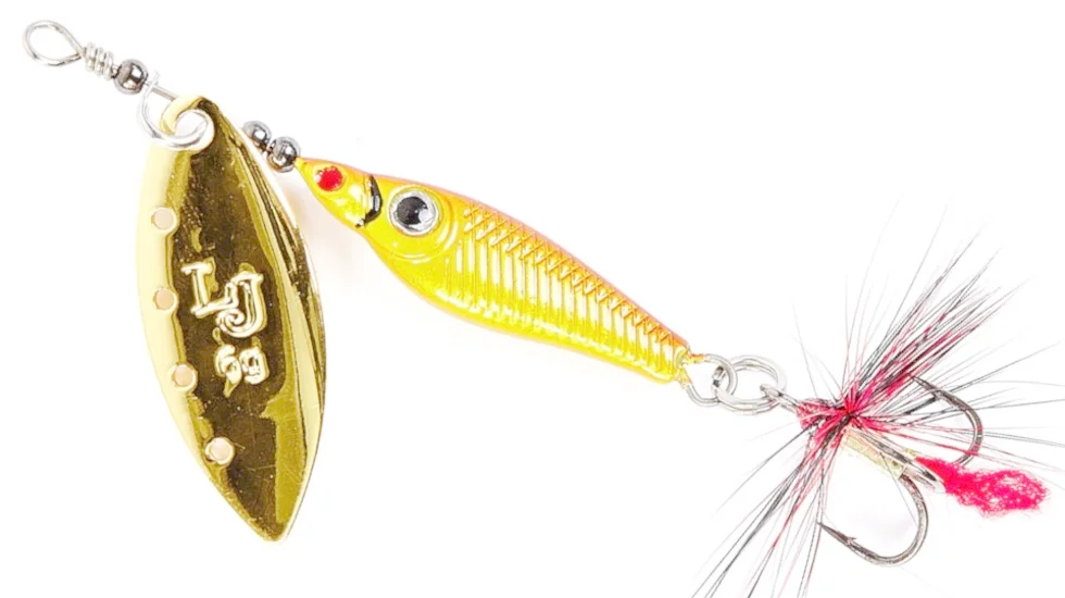 Серія нових обертових блешень Trian Blade Long від фірми Lucky John є класичною приманкою для лову хижака на спінінг. Ці приманки мають дуже надійну, стабільну гру, що робить їх привабливою мішенню для атаки будь-якого хижака, що мешкає в наших водоймах. Легка пелюстка блешні з отворами виконана з латуні і має відмінні динамічні даны при русі у воді. Демонструє стійкі обертання незалежно від швидкості і способу анімації. Пелюстка починає працювати відразу після початку проводки. Кут відхилення пелюстки оберталки в робочому стані близько 30 градусів, що дозволяє використовувати блешню Lucky John Trian Blade Long в водоймах з сильною течією. Сердечник має аеродинамічну форму, що дозволяє знизити ризик перекручування шнура під час проводки. Виконано цей елемент з важкого сплаву, що значно збільшує дальність закидання блешні Trian Blade Long.