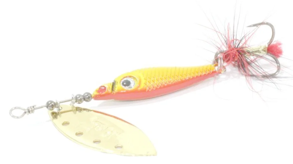 Trian Blade Long - оригінальна серія обертових блешень Lucky John з класичною формою типу «вербова пелюстка». У цих принадах використовуються сучасні конструктивні рішення, які забезпечують надійну і стабільну гру блешень, і роблять їх дуже привабливими для будь-якої хижої риби. Обертова пелюстка зроблена з латуні і володіє стійко-рівним рухом при різних способах і швидкостях проводки. Отвори в пелюстці створюють додаткові вібрації найбільш привабливі для хижака. При обертанні кут відхилення пелюстки становить 30 градусів, що дає можливість працювати приманці на сильній течії. Сердечник приманок зроблений з важкого сплаву, забезпечуючи додаткову дальність при закиданні блешні, і має вивірену геометричну форму сердечника, що дозволяє до мінімуму скоротити перекручування шнура під час роботи приманки. На всіх трійниках пов'язана яскрава мушка, яка служить додатковим подразником для риби і забезпечує рівне обертання пелюстки при самій повільній проводці.