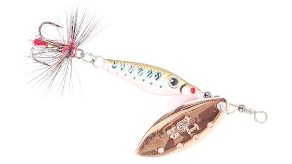 Trian Blade Long - оригінальна серія обертових блешень Lucky John з класичною формою типу «вербова пелюстка». У цих принадах використовуються сучасні конструктивні рішення, які забезпечують надійну і стабільну гру блешень, і роблять їх дуже привабливими для будь-якої хижої риби. Обертова пелюстка зроблена з латуні і володіє стійко-рівним рухом при різних способах і швидкостях проводки. Отвори в пелюстці створюють додаткові вібрації найбільш привабливі для хижака. При обертанні кут відхилення пелюстки становить 30 градусів, що дає можливість працювати приманці на сильній течії. Сердечник приманок зроблений з важкого сплаву, забезпечуючи додаткову дальність при закиданні блешні, і має вивірену геометричну форму сердечника, що дозволяє до мінімуму скоротити перекручування шнура під час роботи приманки. На всіх трійниках пов'язана яскрава мушка, яка служить додатковим подразником для риби і забезпечує рівне обертання пелюстки при самій повільній проводці.