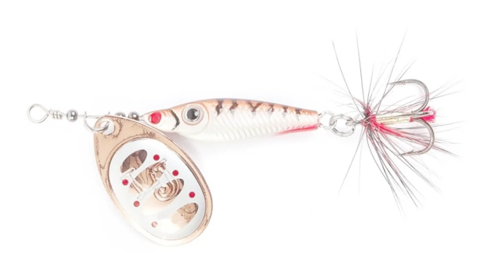 Серія обертових блешень Trian Blade Round від фірми Lucky John є класичною приманкою для лову хижака на спінінг. Ці вертушки мають дуже надійну, стабільну гру, що робить їх привабливою мішенню для атаки будь-якого хижака, що мешкає в наших водоймах. Легка обертова пелюстка виконана з латуні і має відмінні динамічні дані при русі у воді. Демонструє стійкі обертання незалежно від швидкості і способу анімації. "Заводиться" відразу після початку проводки. Кут відхилення пелюстки оберталки в робочому стані близько 60 градусів, що дозволяє використовувати блешню Lucky John Trian Blade Round для лову на спокійних водоймах. Пелюстки Trian Blade Round пофарбовані з двох сторін різними кольорами, що ще більше стимулює інтерес хижака до приманки. Сердечник має аеродинамічну форму, що дозволяє знизити ризик перекручування шнура під час проводки. Цей елемент виконаний з важкого сплаву, що значно збільшує дальність закидання блешні Trian Blade Round. Також для збільшення привабливості приманки трійник оснащується яскравою мушкою.