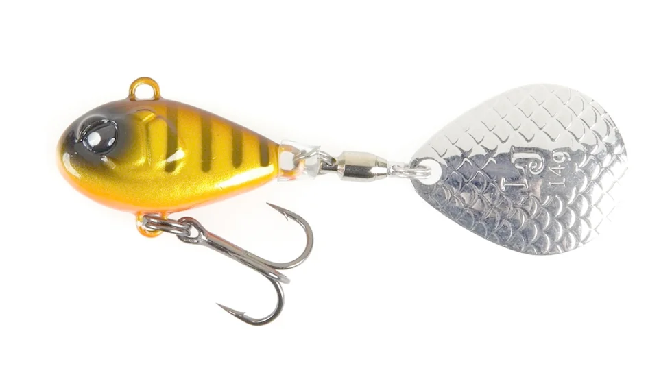 Блешня тейл-спінер LJ BASARA TAIL SPIN 24 г / 007 – це ефективна штучна спінінгова приманка, головною особливістю якої є розташування обертової пелюстки на хвості та наявність головного обтяжливого елемента.