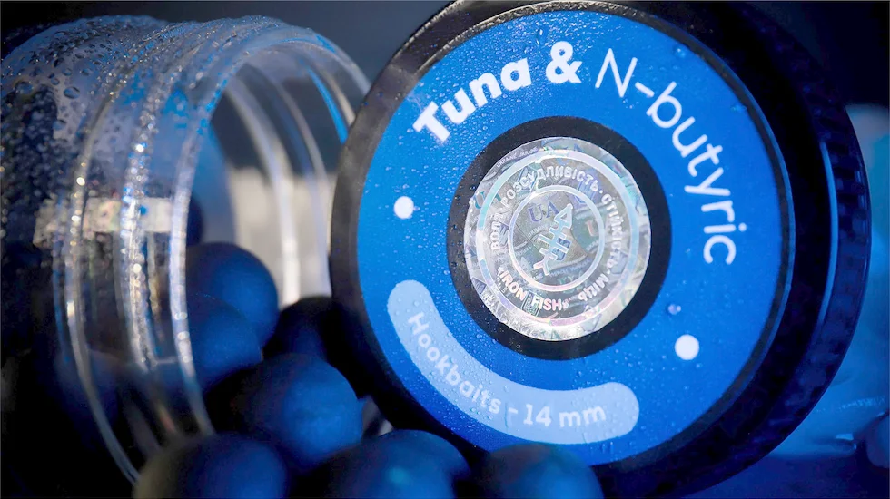 Бойл насадочний розчинний "Tuna & N-butyric" / "Тунець & N-butyric" від ТМ "IRON FISH" — донна приманка для риболовлі, що має унікальний смак та аромат атлантичного тунця з додаванням масляної кислоти. Ця приманка бірюзового кольору виготовлена вручну за допомогою англійських дошок, що гарантує швидку та бездоганну роботу у воді. Ідеально підходить для ловлі з використанням монтажів Flat/Method Feeder, а також класичної коропової оснастки. Діаметр приманки — 14 мм, час роботи у воді — 4 години при температурі 10°C, що робить її чудовим вибором для риболовлі на трофейну рибу в холодній воді.