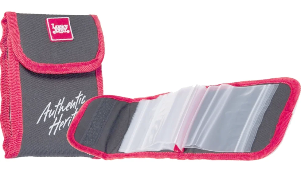 Практична рибальська сумка для зберігання приманок і дрібних елементів оснастки. Виготовлена з міцного синтетичного матеріалу, дозволяє зберігати і транспортувати снасті в ідеальному порядку, при цьому захищаючи їх від пилу, вологи. Застібається на "липучку", відрізняється не тільки продуманою простою і зручною конструкцією, але і стильним зовнішнім виглядом. Спеціальний чохол Lucky John Lure Wallet продається з пакетами Zip Lock для рибальських принад та різних дрібниць