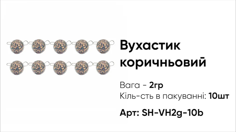 Грузило Вухастик PRO 2г (10 шт) коричневий — легке свинцеве грузило класичної «вухастої» форми, призначене для монтажу джигових приманок. Завдяки компактній вазі 2 г ідеально підходить для мікроджига та делікатної риболовлі на хижака в умовах стоячої води або слабкої течії.