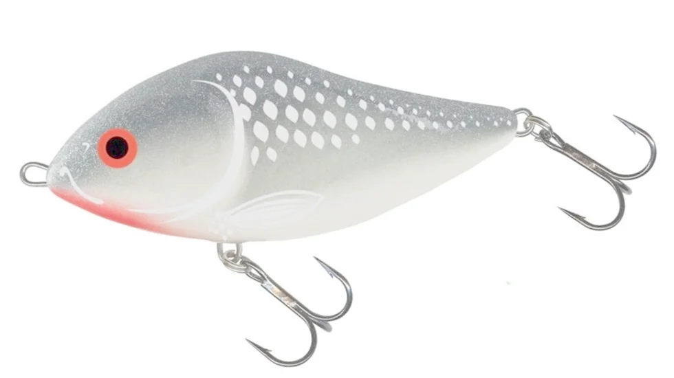 Сімейство уловистих, а тому популярних вже більше 15 років джерків Slider доповнила модель F 05. Її довжина всього 5 см, а вага 6,5 грам. Такі габарити залучать невелику щучку і окунів різних розмірів. Занурюється воблер без лопаті на 0,5 м. Сплощений і високий корпус Salmo Slider F 05 імітує невелику рибку. На ривках він ковзає по сторонам, що характерно для глайдерів. На паузі в Stop & Go спливає. Ця властивість дозволяє обловлювати джерком порослі мілякі, де люблять годуватися навіть великі хижаки. Міцні гачки VMC допоможуть утримати навіть норовисту рибу.