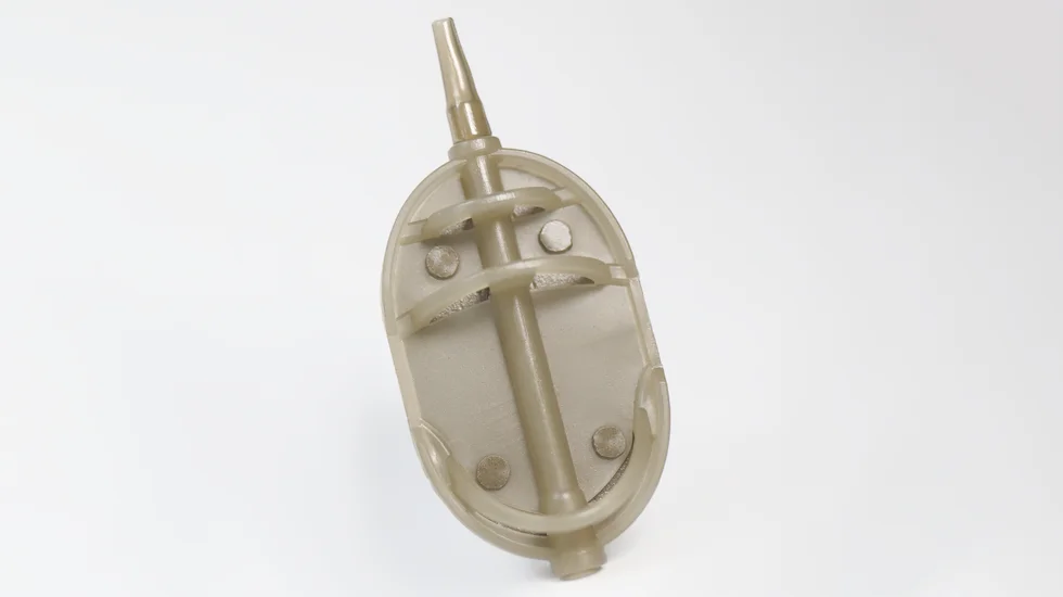 Прикормка добре тримається в годівниці навіть на силових, далеких закиданнях. Пластикова частина міцна і надійна, виготовлена з первинної сировини, а вантаж надійно закріплений у тілі годівниці. Особливість Flat годівниць у нижньому розташуванні вантажу, під час падіння на дно флет-годівниця завжди лягає насадкою з кормом угору, залишаючись у вільному доступі для риби.