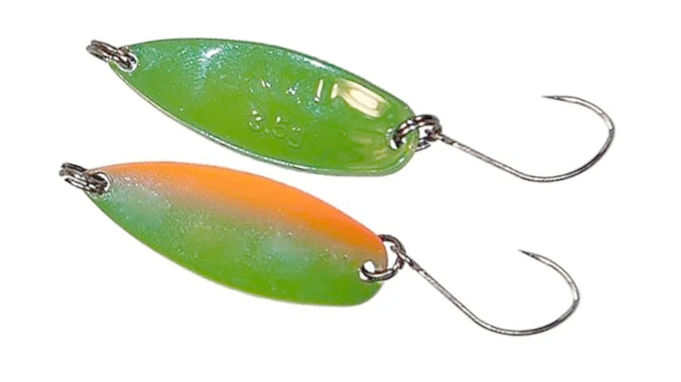 В каталозі блешень від розробників Lucky John є мініатюрні колебалки для полювання на примхливу форель. Принади із серії Ayu 2,4 мають довжину 3 см при масі 2,4 гр. Однак геометрія даної моделі прорахована таким чином, щоб збільшити дальність польоту при малій вазі. Потрапляючи в воду, колебалка створює спокусливий для примхливої форелі сплеск. "Оживає" Ayu 2,4 при простому рівномірному намотування волосіні, але допустимі і проводки з паузами в залежності від активності риби. Дражливі коливання виникають навіть при самій повільній швидкості анімації, зберігаються на течії. Для дбайливого ставлення до клюнувшої хижачки всі блешні обладнані безбородими одинарниками. Дані колебалки будуть привабливі не тільки для різних лососевих, але і для обережного головня і язя, цікавого окуня, жереха.