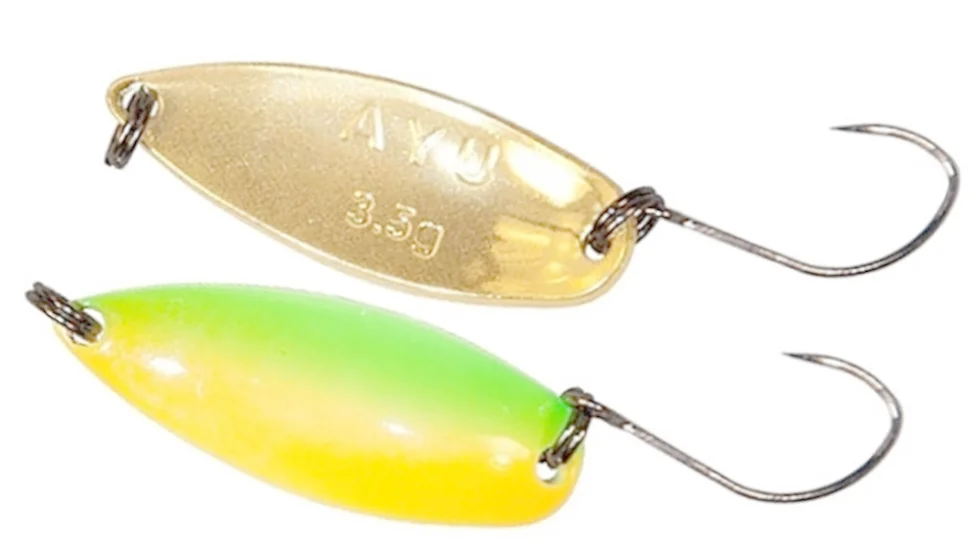 В каталозі блешень від розробників Lucky John є мініатюрні колебалки для полювання на примхливу форель. Принади із серії Ayu 2,4 мають довжину 3 см при масі 2,4 гр. Однак геометрія даної моделі прорахована таким чином, щоб збільшити дальність польоту при малій вазі. Потрапляючи в воду, колебалка створює спокусливий для примхливої форелі сплеск. "Оживає" Ayu 2,4 при простому рівномірному намотування волосіні, але допустимі і проводки з паузами в залежності від активності риби. Дражливі коливання виникають навіть при самій повільній швидкості анімації, зберігаються на течії. Для дбайливого ставлення до клюнувшої хижачки всі блешні обладнані безбородими одинарниками. Дані колебалки будуть привабливі не тільки для різних лососевих, але і для обережного головня і язя, цікавого окуня, жереха.