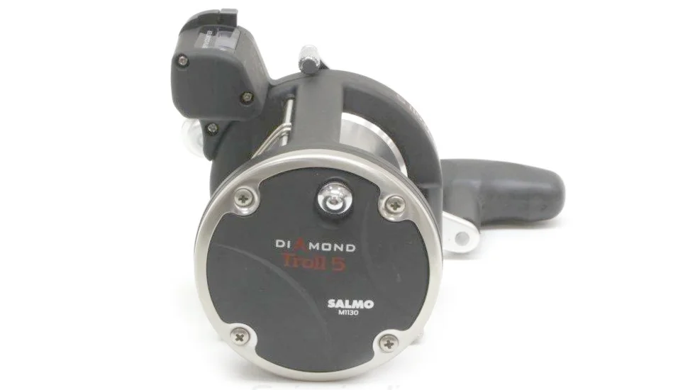 Команда конструкторів бренду Салмо удосконалила тролінгову котушку Diamond Troll 2. Нова модифікація отримала індекс "5". Головні зміни: збільшено кількість підшипників з 2 до 5 і доданий лічильник волосіні. Дана мультиплікаторна котушка потужна і міцна. Важить 534 гр. Карбопластовий корпус посилений зліва металевим кільцем. Сталева ручка має зручний Т-образний кноб з приємним на дотик гумовим покриттям. Шпуля виконана з алюмінію. Вона вміщує до 330 м волосіні 0,45 мм. Відповідає за рівне, щільне намотування механізм з нескінченним гвинтом і дротяний укладач волосіні. Експерти Salmo оснастили Diamond Troll 5 осьовим і фрикційним гальмом. Регулювання обох гальмівних систем знаходиться в правій частині корпусу. Тут же розташовані важіль блокування шпулі і тріскачка. Остання може замінити сигналізатор клювання, якщо ви ловите на кілька бортових вудлищ відразу.