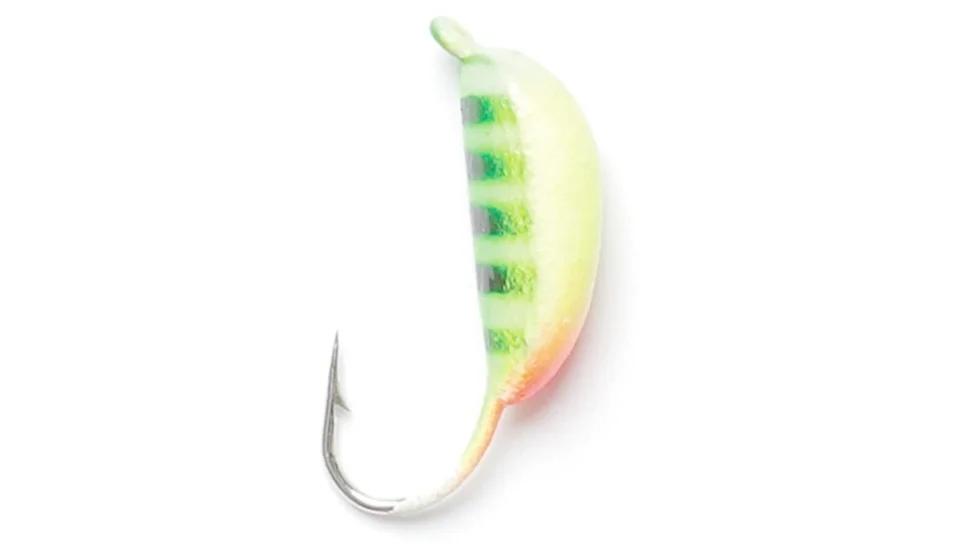 Мормишка вольфрамова з петелькою. Ще один варіант уловистою приманки Банан. Тепер ця приманка стала компактніше і важче. Яскраве забарвлення приманок, з чергуються поперечними смужками із стійкого полімерного покриття, завжди буде привабливою для різної риби. на цю приманку можна ловити з успіхом і без насадки.