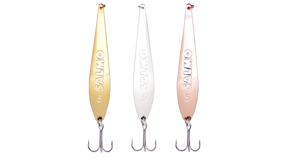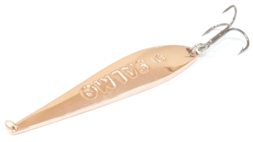 Вертикальна блешня Salmo користується великою популярністю у рибалок. Технологія виготовлення цієї блешні класична: штампування з латуні, холодне штампування для отримання оригінальної форми приманки, ручне полірування, нанесення гальванічного та захисного покриття. Блешня оснащена висококачественния японським трійником OWNER.