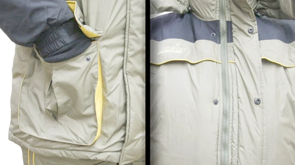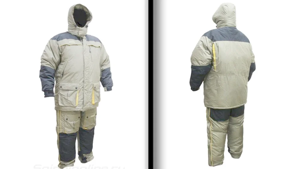 Дуже теплий костюм з утеплювачем DUALTHERMAL SYSTEM. Призначений для експлуатації при температурі до -40 ° C. Костюм розроблений як одяг для зимової риболовлі, з повною адаптацією для їзди на снігоходах. Мембранна тканина.