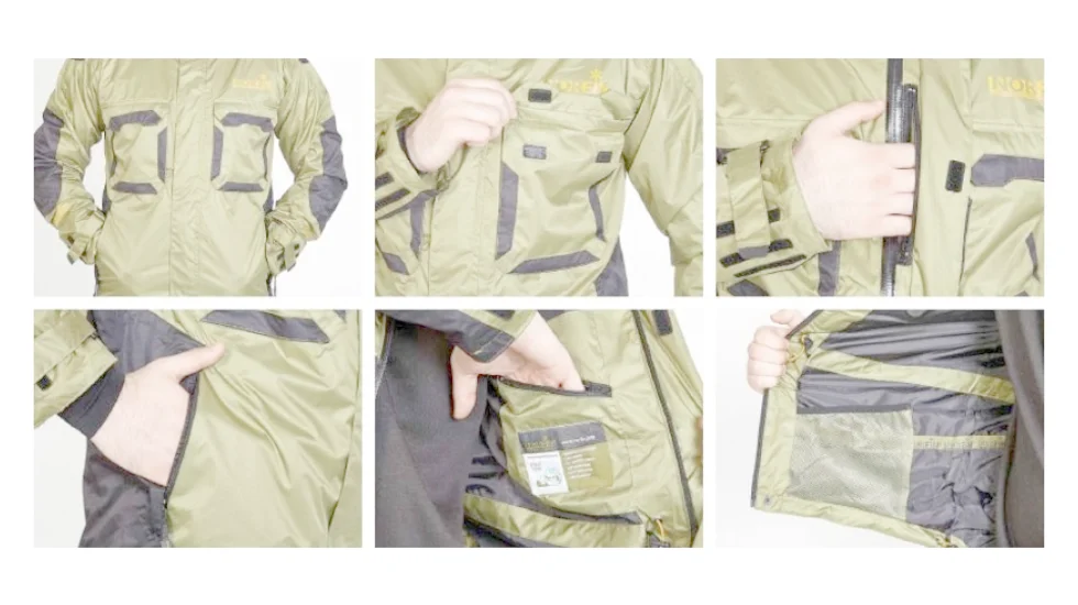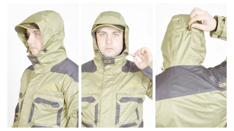 Куртка сучасного дизайну для активного відпочинку і риболовлі. Куртка має подовжену спинну частину, регулювання капюшона, обсягу в області талії і знизу, що забезпечує кращий захист і комфортну носку в дощову або вітряну погоду. Матеріал куртки - тонка мембранна тканина, всі шви проклеєні. Куртка, в складеному вигляді, досить компактна.