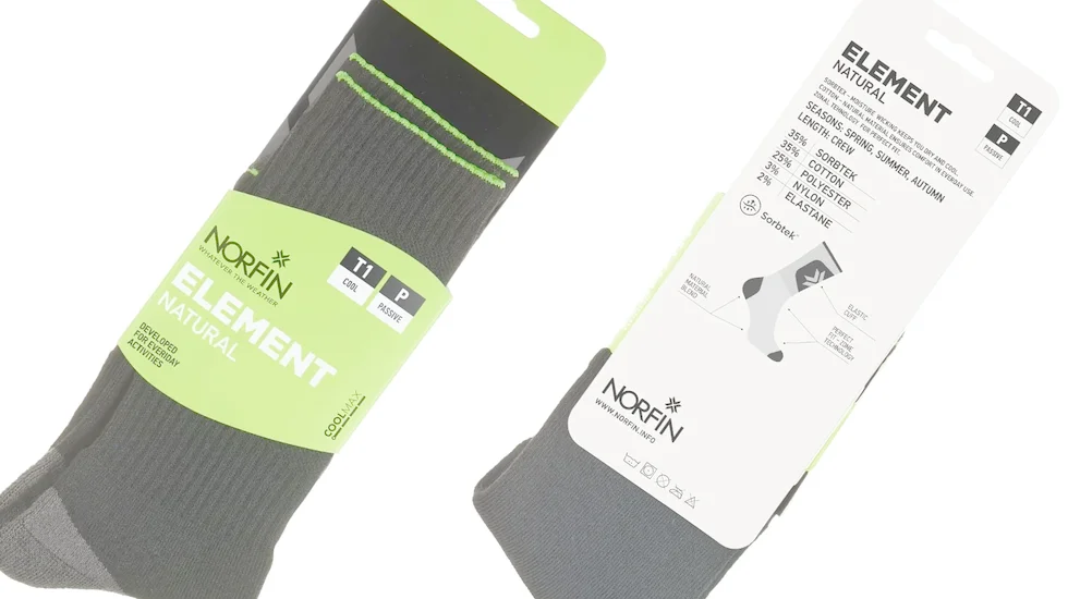 Шкарпетки Norfin T1P ELEMENT NATURAL CREW (35% Sorbtek, 35% бавовна, 25% поліест., 3% нейлон, 2% еласт.)р.L(42-44)