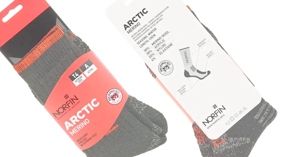 Шкарпетки Norfin T4A ARCTIC MERINO CREW (38% вовна мериноса, 38% акрил, 20% нейлон, 4% эласт.)р.XL(45-47) для щоденного використання в екстремально холодну погоду при високій активності.