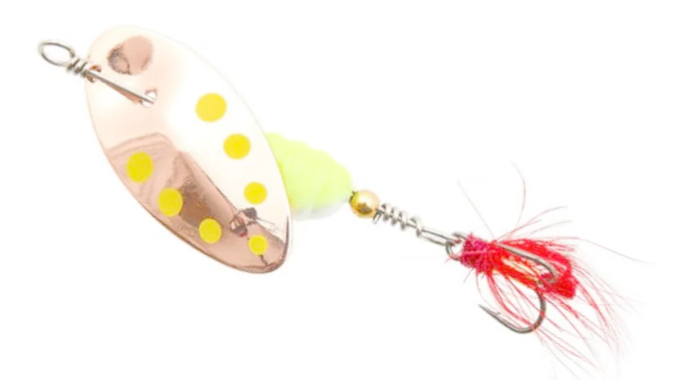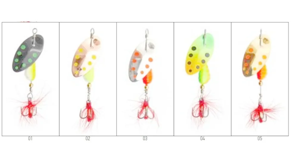 У блешень Excentric In-Line пелюстка кріпиться безпосередньо на вісь приманки. При обертанні вона створює інтенсивні коливання, а також акустичний ефект. Спочатку серія блешень створена для лову форелі, але також вона відмінно зарекомендувала себе і в полюванні на інших хижаків. Ідеально така приманка підходить для лову на ділянках річок з швидкою течією. Excentric In-Line буде ефективно працювати там, де інші блешні збилися б з гри. Маса представленої тут моделі становить 6 гр. Оснащується приманка потрійним гачком, прихованим під опушкою з пір'я. Забарвлення пелюсток доповнене плямами, щоб приманка більше була схожа на справжню рибку. Сердечник дуже яскравий, буде добре видно в каламутній воді.