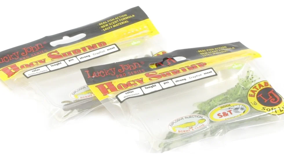 Модель Hogy Shrimp відноситься до фантазійних м'ягких приманок і нагадує не дуже великого рачка. Довжина її становить 8,8 см і маса всього 3 гр. Добре привертає до себе увагу коливаннями численних щупалець різної довжини. Додатковим мікровібраціям при проводці сприяє і глибоке рифлення. Експерти Lucky John просочили тіло Hogy Shrimp ароматними атрактантами. Тому схопивша здобич хижа риба не відразу розпізнає обман і довше тримає її в роті. Це дає більше часу на результативну підсічку. Модель сподобається цікавому окуню, приверне і зубасту щуку. Фантазійні силіконки добре підходять для каролінського монтажу. Здатні спровокувати навіть неактивну, примхливу рибу.