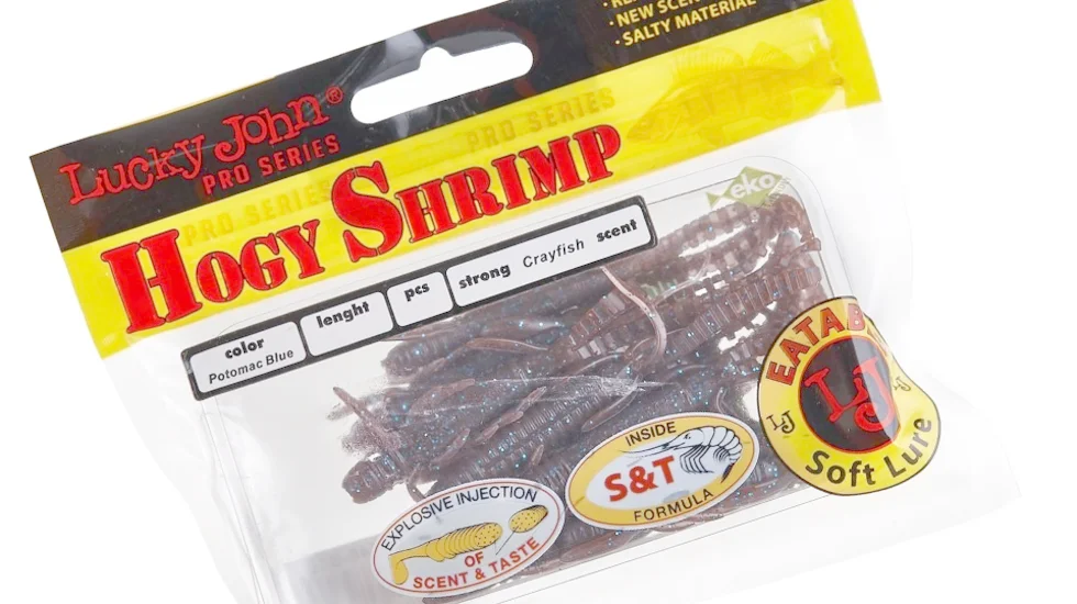 Модель Hogy Shrimp відноситься до фантазійних м'ягких приманок і нагадує не дуже великого рачка. Довжина її становить 8,8 см і маса всього 3 гр. Добре привертає до себе увагу коливаннями численних щупалець різної довжини. Додатковим мікровібраціям при проводці сприяє і глибоке рифлення. Експерти Lucky John просочили тіло Hogy Shrimp ароматними атрактантами. Тому схопивша здобич хижа риба не відразу розпізнає обман і довше тримає її в роті. Це дає більше часу на результативну підсічку. Модель сподобається цікавому окуню, приверне і зубасту щуку. Фантазійні силіконки добре підходять для каролінського монтажу. Здатні спровокувати навіть неактивну, примхливу рибу.