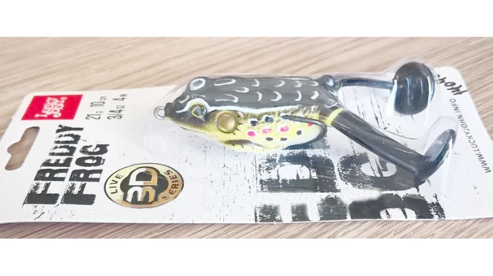 FREDDY FROG - м'ягкі приманки, які імітують жаб, рибалки використовують для лову на поверхні серед водної рослинності. Спіймати на таку приманку можна як велику щуку, так і більш екзотичну здобич - змієголова. Тіло «жаби» від фірми Lucky John виконано з м'якого силікону. При клюванні порожнистий м'який корпус легко продавлюється під могутніми щелепами хижака, оголюючи жала подвійного гачка. До речі, саме завдяки тому, що вістря звернене вгору, «жаба» без зусиль проходить зарослі ділянки водойми. Лапки створюють на поверхні водойми таку гру, яка приверне увагу великого хижака, який бажає поласувати таким ситним «обідом», як жаба. Вага модифікації становить 21 гр., а її довжина – 6,4 см.
