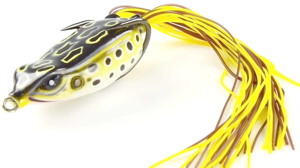 Принади у вигляді жаби застосовуються для риболовлі в зарослих місцях на поверхні водойми. Нерідко великі хижаки люблять ховатися в таких заростях в очікуванні ситного «обіду». Приманка Frog своєю активною грою якраз і розрахована на ловлю такої риби. Здобиччю може стати щука або більш екзотична особина - змієголов. Тіло «жаби» порожнисте і дуже м'яке, тому під час атаки хижака воно легко продавлюється, відкриваючи жала гострого подвійного гачка. Численні силіконові нитки, які своїми коливаннями імітують рухи лапок жаби, відповідають за привертання уваги хижої риби. Довжина представленої моделі становить 6,5 см., А її вага - 15 гр.