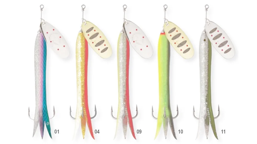 Ця креативна принада розроблялася для лову річкового лосося, а також великої морської форелі. Блешня оснащена вольфрамовою серцевиною, а при фарбуванні м'якої насадки у вигляді вугра фарба вводиться до складу матеріалу, а не наноситься зверху. Пелюстки блешні покриті справжнім золотом, блиск якого незмінно привертає хижака, а для найкращої засічки на приманці встановлені високоякісні японські трійники.