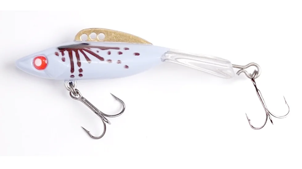 Можливість регулювати динаміку коливань і амплітуду рухів - особливість моделі Mebaru 57 з лінійки Pro Series. Цей балансир для бренду Lucky John був розроблений японськими фахівцями. Об'ємний корпус імітує вгодованого малька - ситний корм для окунів і щук. Зверху розташований відлитий з латуні плавник з трьома отворами. "Класичну" гру для балансира з широкими "вісімками" Mebaru 57 демонструє, якщо закріпити волосінь посередині. При використанні переднього отвору ця приманка буде "вести себе" агресивніше, з вертикальними - підстрибуваннями. Якщо закріпити волосінь за крайнє кільце ззаду, то балансир почне грати плавно і спокійніше, що сподобається неактивному хижакові. Довгий хвостовий плавець стабілізує приманку на будь-якій глибині і перебігу. Габарити представленої моделі - 5,7 см, вага - 12,5 гр. У неї немає впаяних одинарників, щоб не зачепитися при виведенні за кромку льоду. Трійник ззаду зйомний - кріпиться прямо до хвоста. Хвостовий плавник і тіло - єдине ціле, тому всі моделі бренду Lucky John з лінійки Pro Series Mebaru 57 славляться своєю міцністю.