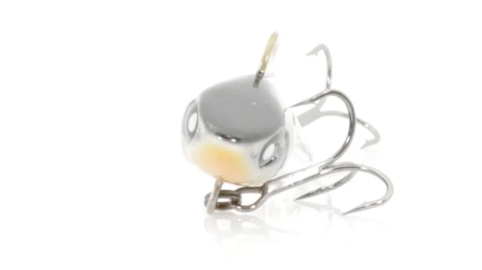 Всі принади з лінійки Pro Series розроблялися для бренду Lucky John фахівцями з Японії. Представлений тут балансир Mebaru 77 теж не виняток. Модель міцна, так як корпус і хвіст - єдине ціле, виконані з морозостійкого пластика. Спереду є широкий плоский майданчик, який вносить "родзинку" в гру. Вивірене балансування робить приманку стабільною як на великій глибині, так і на течії. Балансир довжиною 7,7 см і вагою в 27 гр може обловити вири і ями в пошуках трофейних щуки і судака. Особливість приманки Lucky John модельного ряду Pro Series Mebaru 77 - наявність латунного спинного плавника. Три отвори для кріплення волосіні потрібні, щоб міняти характер гри. Використання переднього - робить гру більш агресивною, з часткою вертикальної складової. Заднього - спокійної і менш амплітудної. Малювати широкі "вісімки", обловлюючи максимальний простір під лункою, балансир буде, якщо волосінь закріпити за середній отвір. Творці, щоб виключити зачепи за кромку льоду, не стали використовувати стандартні впаяні одинарники. У Mebaru 77 є два трійника. Задній прикріплений до наскрізного дротового каркасу, який виходить з кромки хвоста. Цей трійник при бажанні можна зняти.