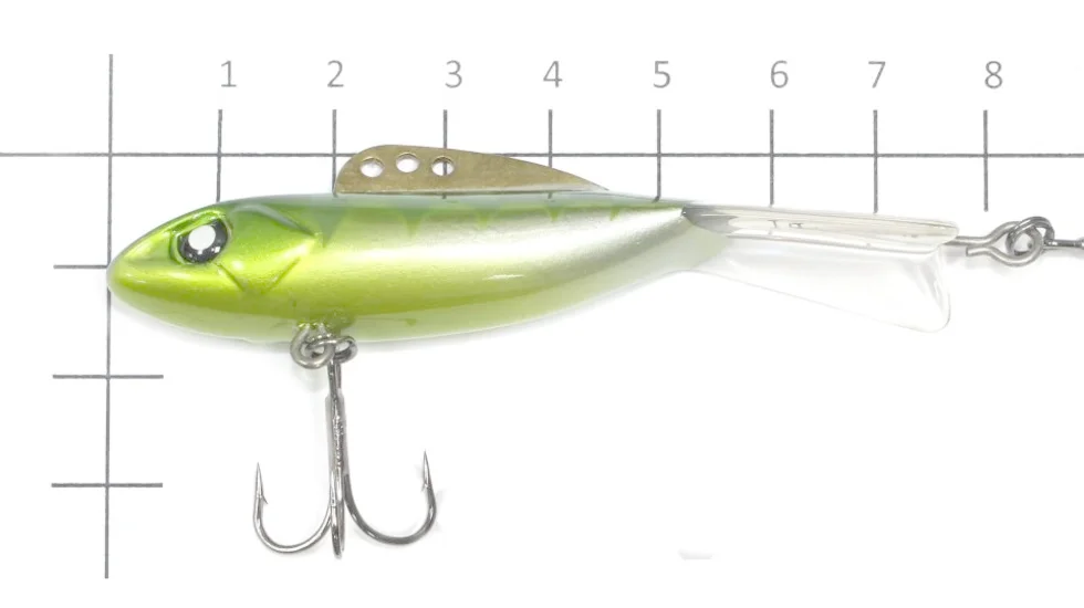 Всі принади з лінійки Pro Series розроблялися для бренду Lucky John фахівцями з Японії. Представлений тут балансир Mebaru 77 теж не виняток. Модель міцна, так як корпус і хвіст - єдине ціле, виконані з морозостійкого пластика. Спереду є широкий плоский майданчик, який вносить "родзинку" в гру. Вивірене балансування робить приманку стабільною як на великій глибині, так і на течії. Балансир довжиною 7,7 см і вагою в 27 гр може обловити вири і ями в пошуках трофейних щуки і судака. Особливість приманки Lucky John модельного ряду Pro Series Mebaru 77 - наявність латунного спинного плавника. Три отвори для кріплення волосіні потрібні, щоб міняти характер гри. Використання переднього - робить гру більш агресивною, з часткою вертикальної складової. Заднього - спокійної і менш амплітудної. Малювати широкі "вісімки", обловлюючи максимальний простір під лункою, балансир буде, якщо волосінь закріпити за середній отвір. Творці, щоб виключити зачепи за кромку льоду, не стали використовувати стандартні впаяні одинарники. У Mebaru 77 є два трійника. Задній прикріплений до наскрізного дротового каркасу, який виходить з кромки хвоста. Цей трійник при бажанні можна зняти.