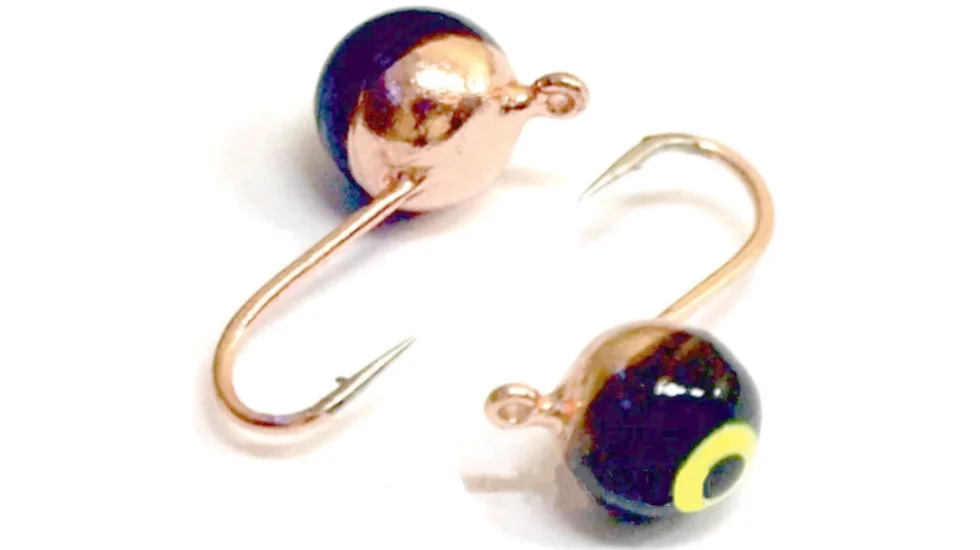 Мормишка вольфрамова з петелькою і вічком. Класична форма мормишки з петелькою. Волосінь прив'язується до петельки і довше зберігає свою міцність на вузлі. Універсальна форма, висока уловистість при високій освітленості під водою і відсутність втрати міцності волосіні в місці кріплення - основні переваги цих мормишок. Додатковий елемент привертає увагу до приманки - кольорове вічко.