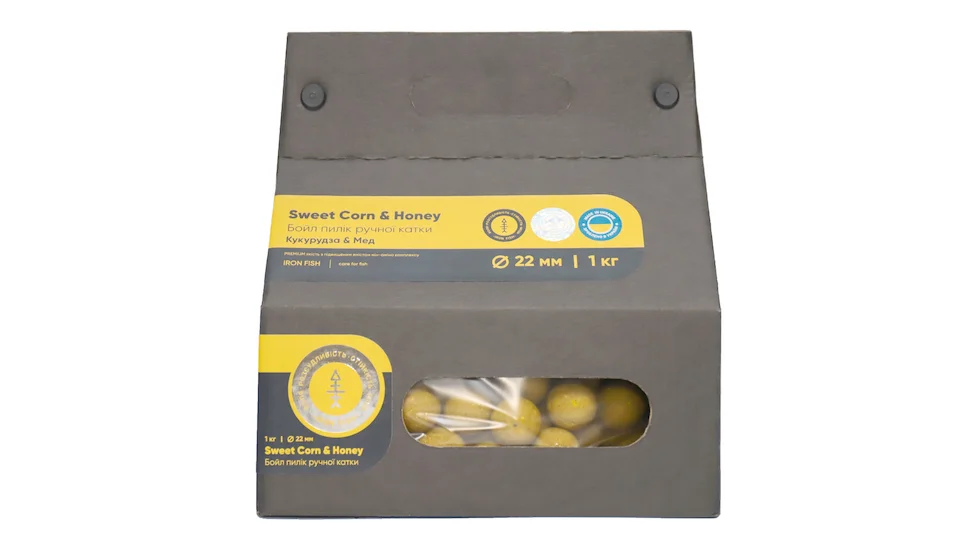 Розчинні бойли "Кукурудза / Мед" 22мм – 1кг від IRON FISH – діаметром 22 мм, скатані вручну на англійських дошках. Бойли виготовлені на преміум міксі, що включає збалансовану кількість білків, жирів та вуглеводів, що робить їх ідеальними для риболовлі на коропа, амура та інших видів риб. Їх потужний аромат кукурудзи та меду допоможе залучити рибу до вашої кормової точки, підвищуючи шанси на успішний улов.