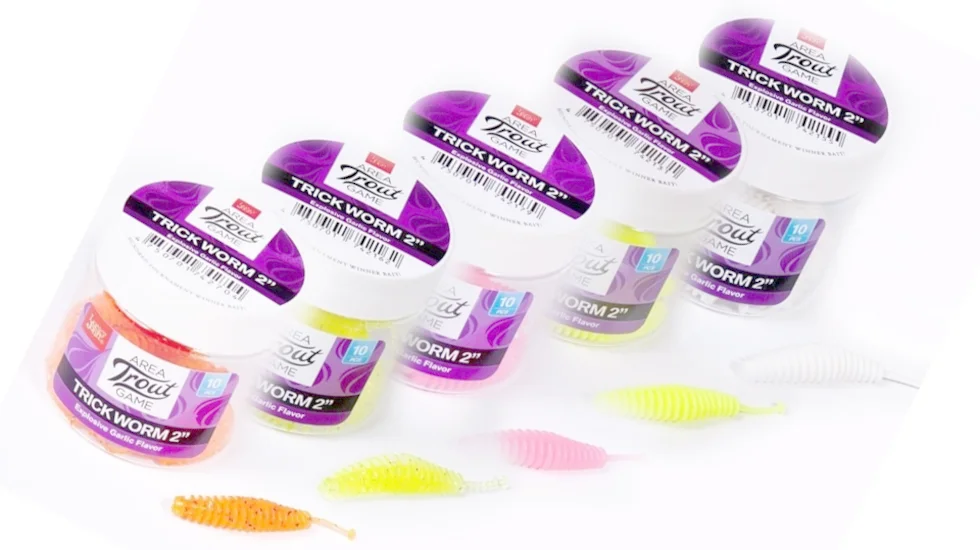 Компанія Lucky John розробила нову програму для любителів лову ставкової форелі. Серія приманок Trick Worm входить в лінійку спеціалізованих форелевих приманок. Крім риболовлі на прісноводних ставках, ця модель може використовуватися для рокфішингового лову. Об'ємна приманка з ребристим тілом добре підходить для оснасток "дроп-шот", "джиг ріг", каролінських і техаських монтажів. Вона представлена в яскравих забарвленнях, традиційно використовуваних для форелевої риболовлі. Принади Trick Worm - "їстівні". Вони оброблені великою кількістю маслянистого атрактанта з насиченим запахом часнику. Принади упаковані в пластикові баночки з герметичною кришкою, які краще зберігають аромат атрактантів. У кожній банці - 10 шт.