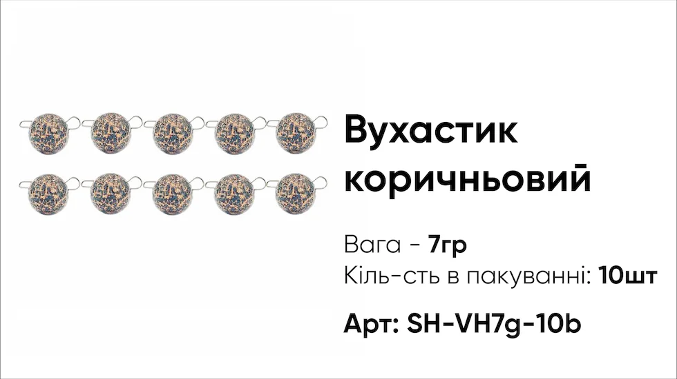 Грузило Вухастик PRO 7г (10 шт), коричневий — свинцеве грузило з двома вушками для швидкого і надійного кріплення в джигових, донних та інших рибальських оснастках. Компактна форма забезпечує точні закидання та стабільну гру приманки. Матовий чорний колір мінімізує відблиски, що робить його менш помітним для риби. Вага 7 г підходить для лову на середніх глибинах і різних водоймах.