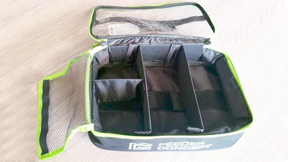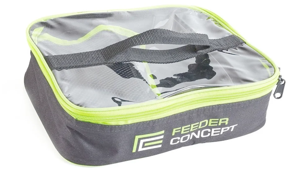 Тут представлена модифікація Feeder Concept 08. Це легкий чохол для аксесуарів. Його зовнішні габарити рівні 310x210x75 мм. При виготовленні використовується міцний, стійкий до зношування Polyester, а також ПВХ. Застібається модифікація на блискавку. На внутрішній стороні кришки є кишеня з прозорого м'якого пластику. Основне відділення розділено перегородками на кілька секцій різного розміру. Таким чином, рибалці буде простіше організувати зберігання годівниць, лісок, монтажів і різних елементів оснащення. Дизайн ємності Feeder Concept 08 виконаний у фірмових кольорах і з логотипом бренду, що підкреслить імідж захопленого фідериста.