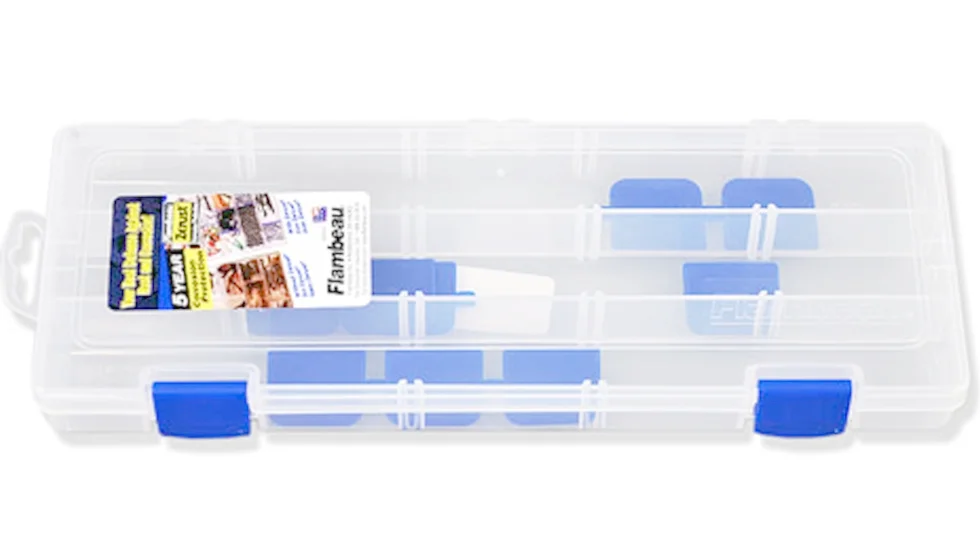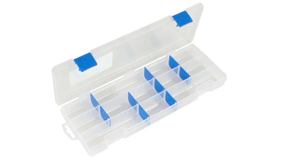 Міцна рибальська коробка Flambeau 3009UM підійде для зберігання різного роду приманок і аксесуарів. Виконана коробка з прозорого пластика з внутрішньою обробкою ZERUST, яка не дозволяє утворюватися корозії на металевих елементах. Всередині є дві стаціонарні перегородки і 9 зйомних, які дадуть вам можливість індивідуально сформувати внутрішній простір. Завдяки своїм універсальним розмірам ця коробка без особливих проблем поміститися в рибальську сумку.