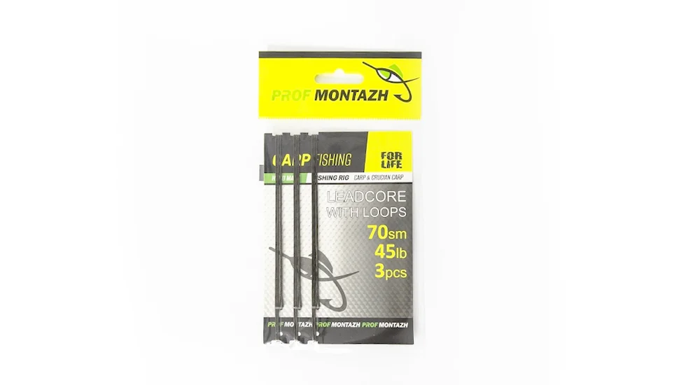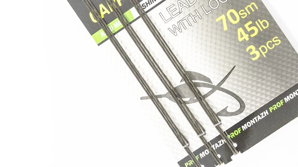 Лідкор из заводними петлями від ТМ Профмонтаж / Profmontazh. Довжина - 70см, розривне навантаження - 45LB, 3шт в упаковці. Предназначений для виготовлення коропових монтажів та оснасток. Матеріал Climax (Germany), колір Camo, зливається із дном, роблячи його непомітним для риби. Для зручності в використанни, на обох кинцяї лідкору виконані завідні петлі заводської якості та проклеїні водостійким клеєм. Довжина кожного - 70см, в комплект входить 3 лідкори найвищої якості.