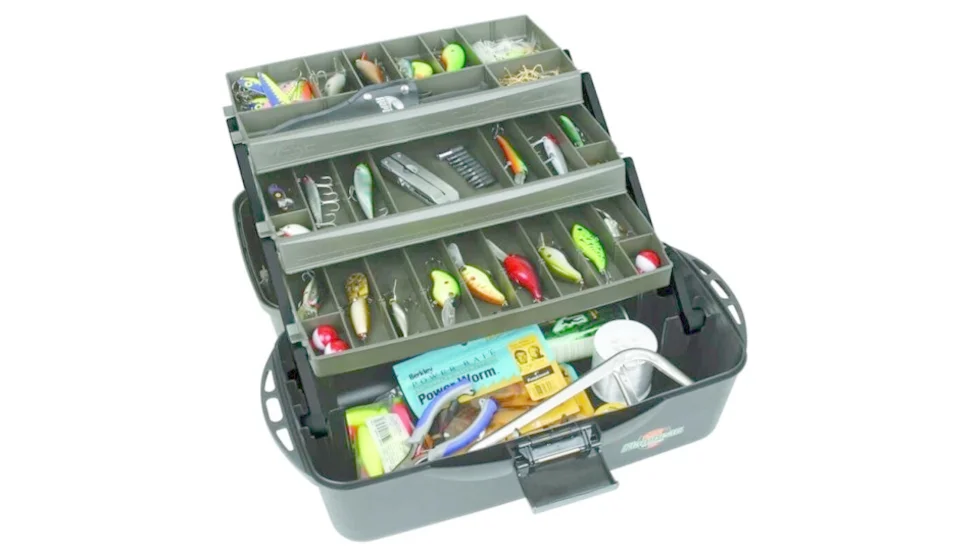Рибальський пластиковий ящик Flambeau 2137B має велику місткість, три підйомних полиці з 37 комірками, що дозволяє тримати велику кількість предметів в необхідному порядку. Виконаний з високоякісного пластику, стійкого до нагрівання від прямих сонячних променів. Надійна засувка Drawtite захищає ящик від випадкового перекидання.