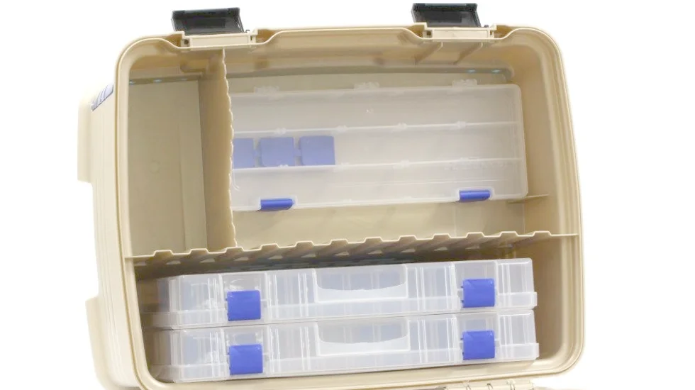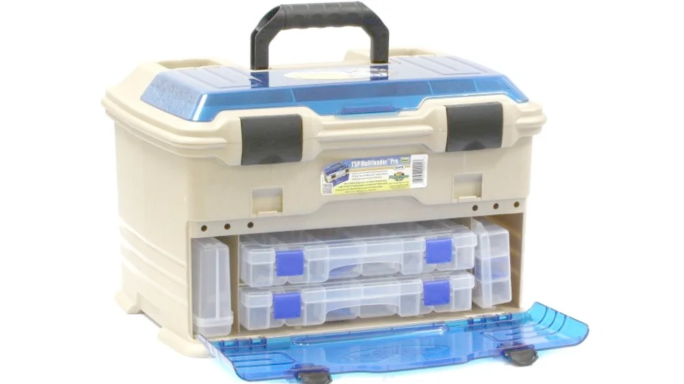 Ящик-станція пластиковий Flambeau (T5P) - багатофункційний рибальський ящик з ударостійкого пластику, який підійде всім шанувальникам рибної ловлі, незалежно від обраної ними техніки. Внутрішній об'єм моделі розділяється на два рівні: перший — розділений на три відсіки і розташований безпосередньо під верхньою кришкою. Один із них розділений на дві об'ємні коробки для принад, а решта дають змогу вільно розмістити інші рибальські аксесуари; другий — містить дві коробки 4006 моделі, відділення для просушування воблерів і невеликий кейс для дрібного оснащення. Така конструкція ящика дає змогу розмістити в ньому велику кількість принад, згрупувавши їх за різними стилями ловлі. Водночас як внутрішнє, так і зовнішнє відділення закриваються за допомогою високоякісних застібок, даючи вам не хвилюватися про можливу втрату вмісту через випадкове відкриття ящика.