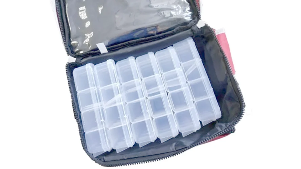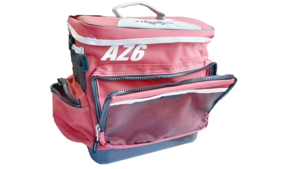 Ящик-сумка з коробками Flambeau (AZ6). Наплічна сумка з коробками для ходової риболовлі, виготовлена з міцного водостійкого матеріалу, закривається замками на блискавці. Має чотири кишені і регульований наплічний ремінь для транспортування. Основні особливості: закривається замками-блискавками, верхня кріпильна гумка-бандаж і чотири кишені, із захистом принад полімером Zerust, міцний водостійкий матеріал сумки, м'який ремінь на плече