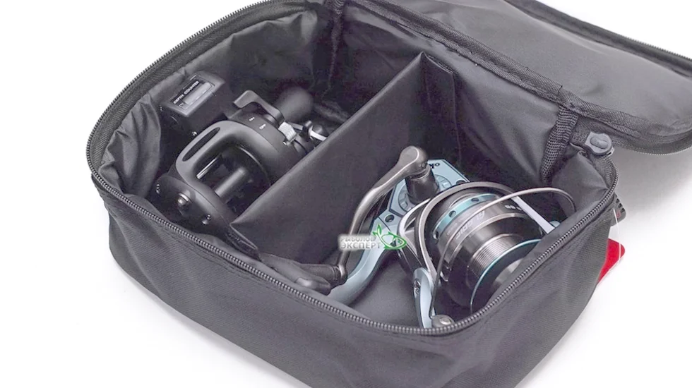 Практична рибальська сумка для зберігання котушок на два місця. Виготовлена з міцного синтетичного матеріалу, дозволяє зберігати і транспортувати снасті в ідеальному порядку, при цьому захищаючи їх від пилу, вологи, несильних ударів. Для перенесення передбачена зручна ручка, застібається на "блискавку". Відрізняється не тільки продуманою простою і зручною конструкцією, але і стильним зовнішнім виглядом.