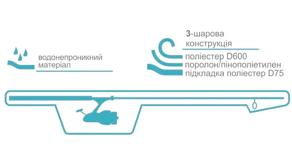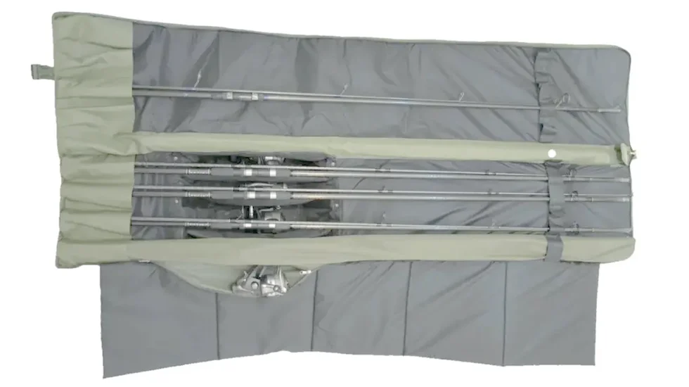 Великий рибальський чохол для вудочок Acropolis КВ-7бн, розрахований на транспортування 4-х карпових вудилищ без котушок і 4-х вудилищ з котушками. Чохол виготовлений з трьох шарів матеріалу: зовнішній шар — міцний поліестер D600, внутрішній — пінополіетилен (поролон) 2 см для надійного захисту вудлищ, підкладка — поліестер D75. Чохол оснащений об'ємним відділенням для котушок, кишенями для аксесуарів і фіксованим кріпленням для снастей. Зручний у транспортуванні завдяки переносній ручці та наплічному ременю. Додатково має об'єм для кільця 50 мм, а також можливість зберігання вудлищ в чохлах Acropolis КВ-5а або КВ-5б.
