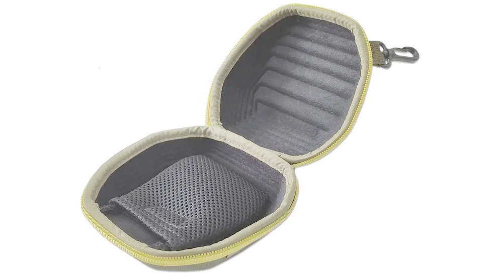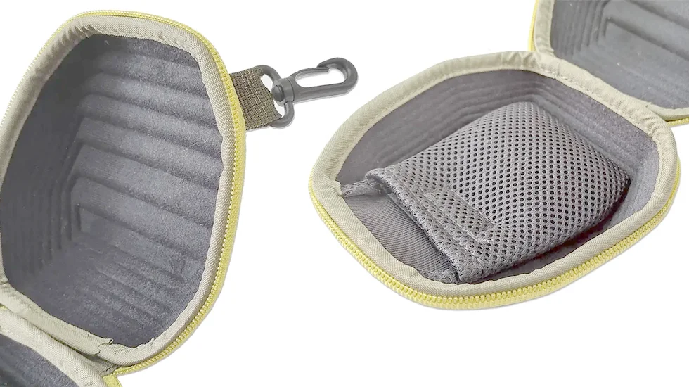 Внутрішня кишенька з тришарової сітки дозволяє зручно зберігати знімну ручку котушки. Для зручності носіння на зовнішній стороні чохла є карабін, за допомогою якого ви можете прикріпити чохол до шлюфки штанів або сумки. Компактний розмір дозволяє помістити чохол навіть у рюкзак чи сумку.