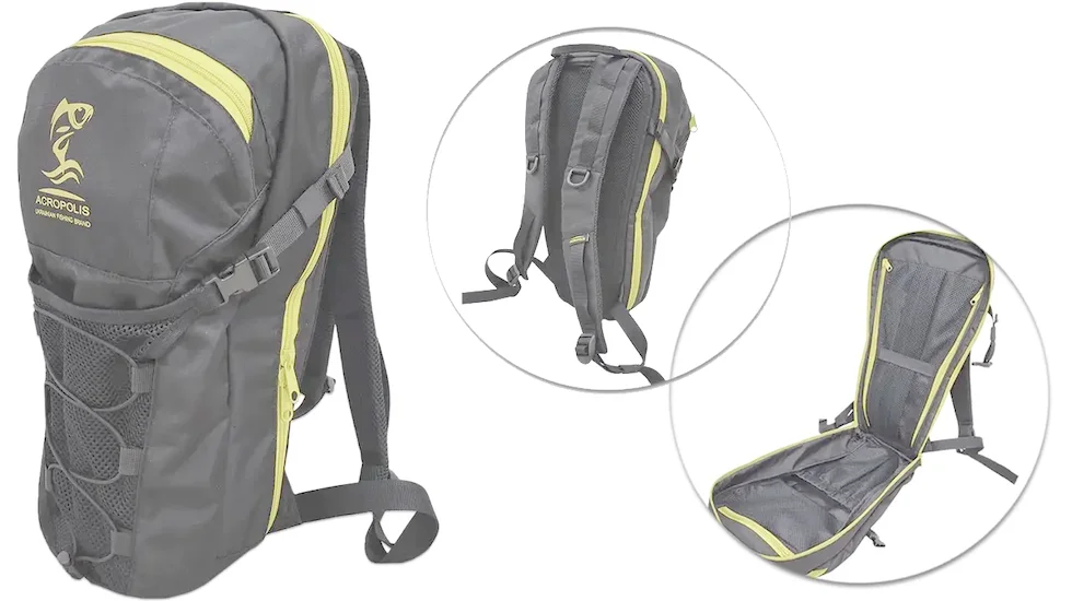 Конструкція: Рюкзак розроблений для ходової риболовлі з надійним і міцним матеріалом, який стійкий до розривів та механічних впливів.