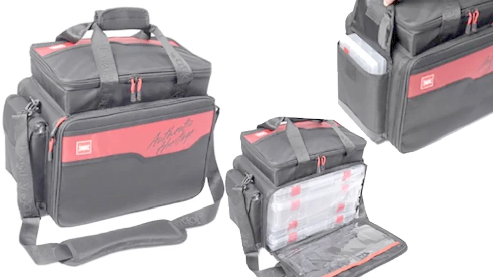 Своєрідний рибальський органайзер з поліестеру, що дозволяє грамотно і компактно розмістити речі, необхідні на рибалці, від одягу і аксесуарів, до снастей і приманок. В комплект включені шість пластикових коробок для об'ємних оснасток і їх елементів. Підійде для наплечного носіння. Основне і верхнє відділення закриваються на подвійні "блискавки". Є достатня кількість кишень і відділень для кожної дрібниці, дно сумки має водонепроникне покриття.
