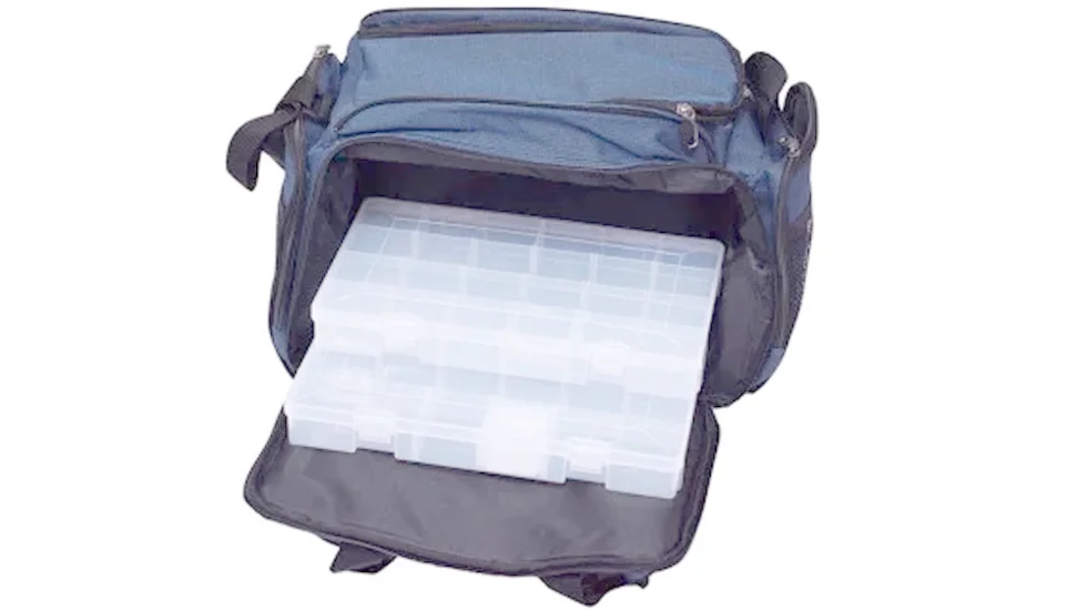 Містка універсальна сумка для риболовлі, яка включає в себе дві пластикові коробки. Виготовлена з довговічного поліестеру, має додаткові відділення та кишені, закривається на застібки "блискавки". Для перенесення передбачена подвійна ручка. Підійде для самих різних цілей, від перенесення снастей до зберігання обіду з термосом.