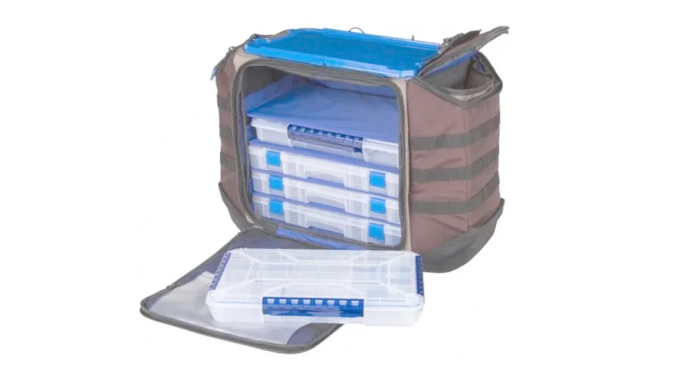 Зручна наплічна сумка зі спеціальним додатковим захистом від проникнення вологи за запатентованою технологією Zerust®. Захист від дощу забезпечує складний дощовий чохол. У комплекті йдуть коробки. Для зручності перенесення сумка забезпечена регульованим по довжині ременем. Є водонепроникна кишеня з вінілу для зберігання телефону. Відмінно підійде для риболовлі або випадків, коли на свіжому повітрі потрібно мати під рукою різні дрібниці, які бояться корозії. Перегородки у сумки блакитного кольору, мають у своєму складі запатентований полімер Zerust VCI®. У разі попадання всередину вологи він починає виділяти нешкідливі випаровування, що утворюють на мокрих металевих поверхнях захисний шар, що не допускає виникнення іржі. Виробник дає гарантію збереження приманок протягом п'яти років, і довше, залежно від кількості вологи, що потрапила в коробки з приманками. В комплект поставки входять коробки для приманок. Варто відзначити, що вся полімерна продукція корпорації проводиться безпосередньо в США (штати Огайо і Вісконсін).
