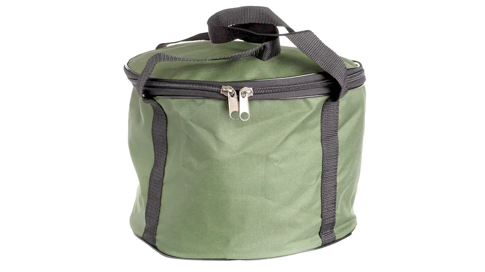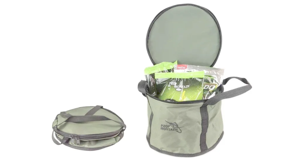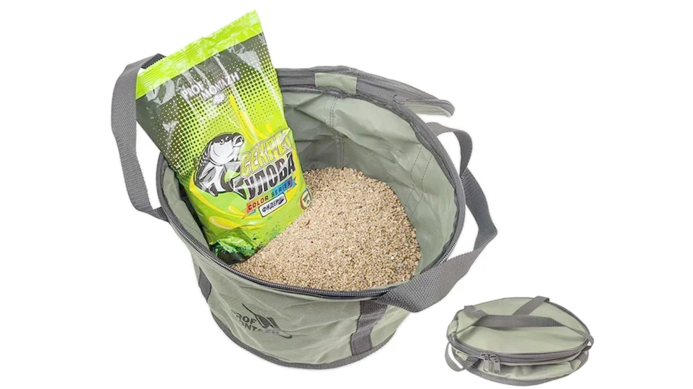 Сумка-Відро для прикормки виготовлена з надійної тканини OxFord600D з внутрішнім ПВХ покриттям. Відро не схильне до забруднень і легко миється. Наявність кришки дозволяє зберегти прикормку в свіжому стані та запобігає її підсиханню. Зручні ручки забезпечують легкість транспортування. У складеному вигляді сумка займає мінімум місця. У такому відрі зручно замішувати до 2 кг прикормки. Розмір сумки: 30х20 см.