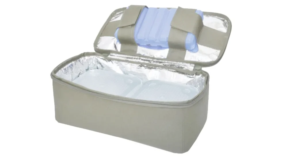 У комплекті з сумкою йдуть дві пластикові коробки розміром 13,5х13,5х5 см, які мають кришки, що надійно закриваються. Це дозволяє запобігти витіканню запахів, а також зберігає температуру всередині сумки. Верхній клапан на блискавці додає додатковий захист від попадання повітря та вологи.