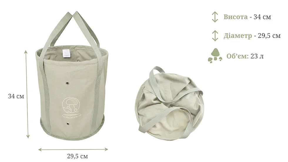 Завдяки металевим люверсам, розташованим по периметру та на дні, забезпечується ефективна вентиляція – гриби не запарюються.